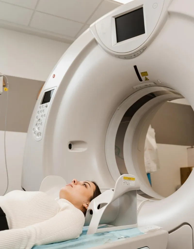 Die Low-Dose-CT ist unkompliziert: Sie liegen auf dem Untersuchungstisch, fahren kurz durch die Öffnung des CT-Geräts und halten für wenige Sekunden die Luft an. In der Regel wird kein Kontrastmittel benötigt (außer bei speziellen Fragestellungen).